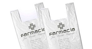 Haga sus bolsas de plastico asa camiseta personalizadas por ambas caras con el logotipo de su farmacia, dando la mejor publicidad a sus clientes.